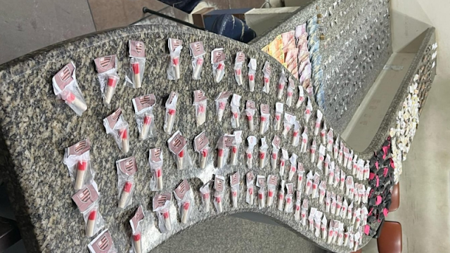 Durante a operação, os policiais encontraram uma grande quantidade de drogas, incluindo 194 pinos de cocaína, 15 comprimidos de maconha, 31 buchas de maconha, 160 pedras de crack, e R$ 1.735,50 em espécie. No entanto, o material apreendido também contou com algo inusitado: 69 comprimidos de tadalafila, medicamento utilizado no tratamento da disfunção erétil, que não possui relação direta com as drogas encontradas.